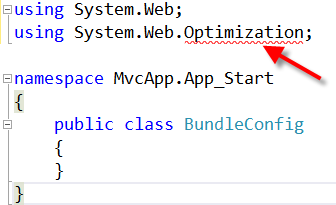 5. If you see the System.Web.Optimization with the red underline, that means you have the reference to your project